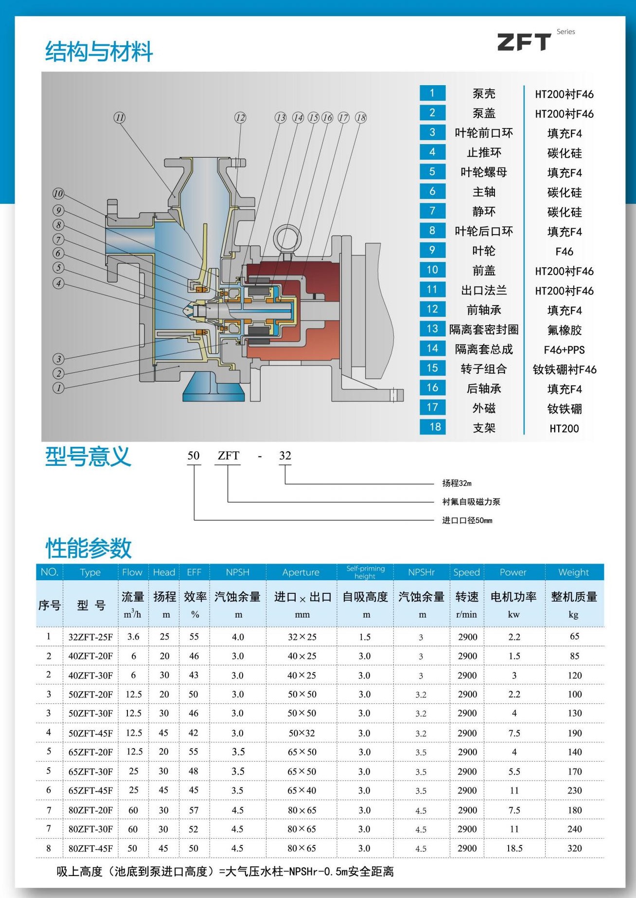 ZFT自吸式襯氟磁力泵價格型號說明