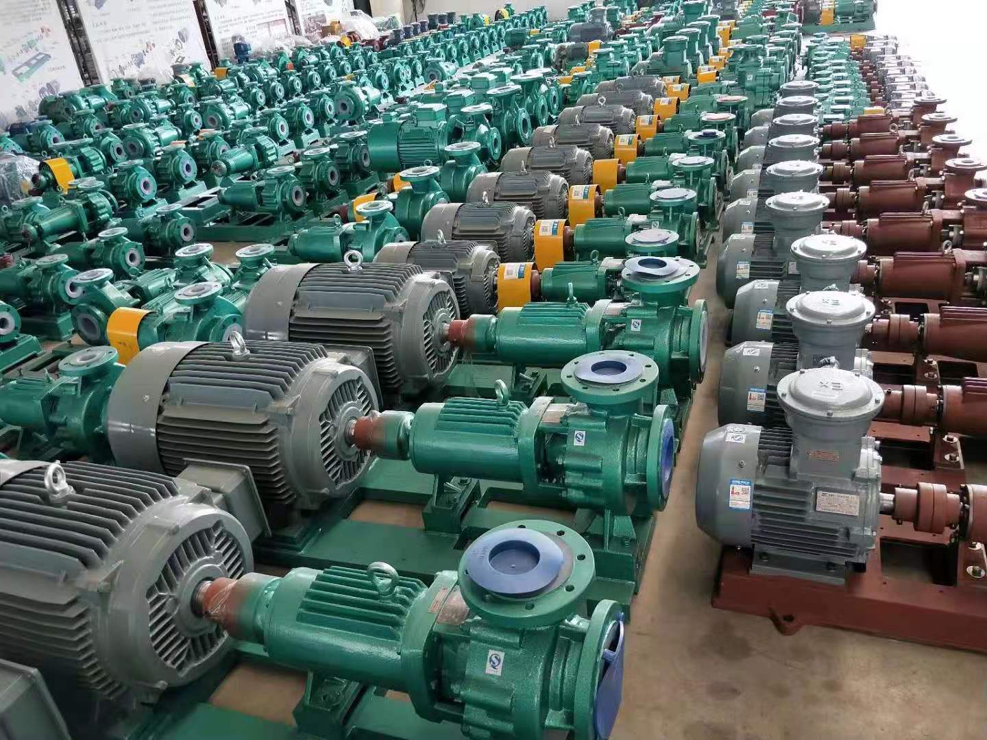 組成部分:全氟泵殼、葉輪、磁力耦合器、加強(qiáng)套、密封件、底座、電機(jī)。
